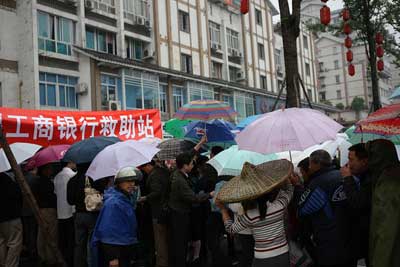 (圖四)5月13日,工行四川省分行在重災區都江堰市進行社會救助